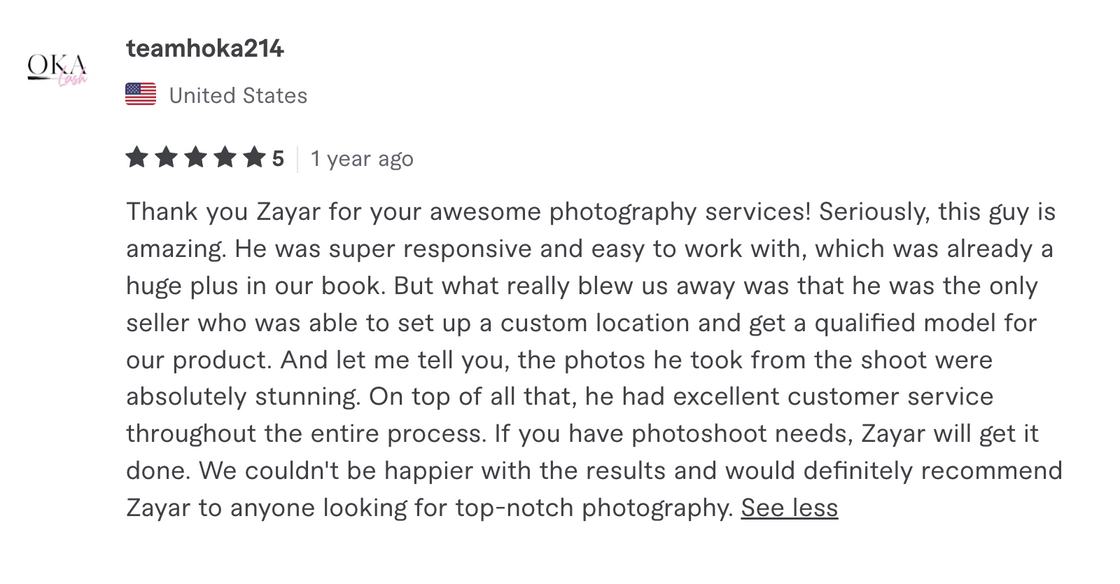 Buying services on Fiverr is secure and convenient, especially for photoshoot projects. The platform's secure payment system, transparent reviews, and verified freelancers ensure trust and safety. Fiverr's user-friendly interface, clear communication tools, and custom offers make it easy to find and hire the right photographer. Buyers can view portfolios, read reviews, and make decision.